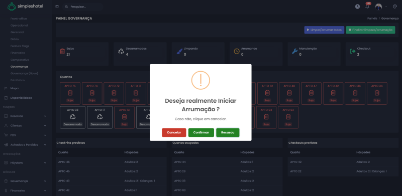✨ Mantenha altos padrões de qualidade e agilize a comunicação entre recepção e governança. Saiba quais quartos estão limpos, ocupados ou em manutenção com um clique.